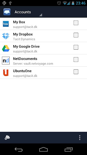 ҩҩҩ Description ҩҩҩ FolderSync enables easy syncstween cloud storageroid s. ҩҩҩ FolderSyncapplication that enables simple sync cloud based storage local folders memory . currently support multiple SkyDrive, Dropbox, SugarSync, Ubuntue, Box.net, LiveDrive, HiDrive, Google Drive, Googlecs, NetDocuments, Amazon S3, FTP, FTPS, SFTP, WebDAV windows sh (Samba/CIFS) accounts, support platforms planned. ҩҩҩ Effortlessly syncrs. Backupr music, pictures or importants phoner cloud storage or way around. neveren easier. Tasker / locale support enables fine grained controlr syncs. ҩҩҩ FolderSync also containsfull manager, that enables managers locally cloud., move deletersr cloud/remote accounts. Support creation/deletion buckets Amazon S3. Uploadwnloads phone.'ssupported. ҩҩҩ IMPORTANT: ҩҩҩyounot create account landscape tablet, go herefo how resolve: ҩҩҩ tacit.dk/foldersync/bugs ҩҩҩ could also try out lite version, test functionalityfore buy. lite versionly allows two accounts sync filters Tasker support. ҩҩҩ Follow news here: ҩҩҩ twitter.com/#!/FolderSync ҩҩҩ full change log found here: ҩҩҩ tacit.dk/foldersync/changelog ҩҩҩ Get support: ҩҩҩ tacit.dk/support ҩҩҩ Please read FAQ. I have addressed commentsre: ҩҩҩ tacit.dk/foldersync/faq ҩҩҩ Detailed description: ҩҩҩ choose any folder memory sync. Currentlye-way two-way sync supported. Synctervals or sync settings specified each syncem configure. set upfolderpair sync automatically keeprs sync. ҩҩҩ Current supported providers: ҩҩҩ ☆ Amazon S3 Simple Storage Service ҩҩҩ ☆ Dropbox ҩҩҩ ☆ SugarSync ҩҩҩ ☆ NetDocuments ҩҩҩ ☆ Googlecs/Google Drive ҩҩҩ ☆ Box.net (WebDAVs) ҩҩҩ ☆ LiveDrive (WebDAV/FTP) ҩҩҩ ☆ HiDrive (WebDAV/FTP) ҩҩҩ ☆ FTP ҩҩҩ ☆ FTPS (SSL/TLS implicit) ҩҩҩ ☆ FTPES (SSL/TLS explicit) ҩҩҩ ☆ SFTP (SSH Transfer) ҩҩҩ ☆ Samba/CIFS/Windows Sh ҩҩҩ ☆ Ubuntue ҩҩҩ ☆ WebDAV ҩҩҩ ☆ WebDAVs (HTTPS) ҩҩҩ Current features: ҩҩҩ ☆stant (full version) ҩҩҩ ☆ Multiple accounts (full version) ҩҩҩ ☆ manager - manager clouds ҩҩҩ ☆ Amazon S3 Client Side Encryption support ҩҩҩ ☆ Tasker/locale support (full version) ҩҩҩ ☆ User defined sync filters (full version) ҩҩҩ ☆ Sync selected provider ҩҩҩ ☆ Two-way sync support deletions ҩҩҩ ☆ Backup/restore settings ҩҩҩ ☆ User specified syncterval specific sync times ҩҩҩ ☆ Choose connection types each syncem ҩҩҩ ☆ Support syncing subfolders ҩҩҩ ☆ Sync hiddens disabled ҩҩҩ ☆ ads (full version) ҩҩҩ Deletion two-way sync: ҩҩҩ enable deletions two-way sync, option Preserve target must unchecked ҩҩҩ FTPS/FTPES serversout resume support: ҩҩҩ Usese atr own risk, uploads maycome corrupt. ҩҩҩ What's version: ҩҩҩ